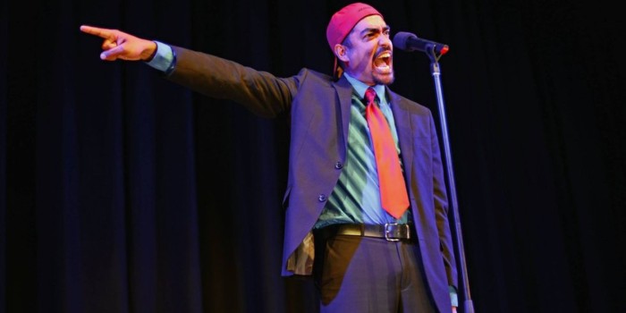 “He said he promised with a smile so honest he could convince Obama, the ballers, Iguodala, and even the Dalai Lama. Even apparently my momma. He promised that he would never harm her…” These are the words poetry slam contestant Eric Tinajero spits as he recounts his childhood life. His words captivate the audience, and he is later awarded 1st place for the event.
